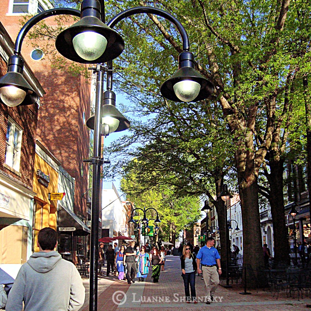 Here’s a shot from historic Charlottesville, VA. This is at the downtown pedestrian mall lined with shops, vendors and eateries of various types. It was another random photo that happened to contain an interesting looking streetlight, so… there you are!